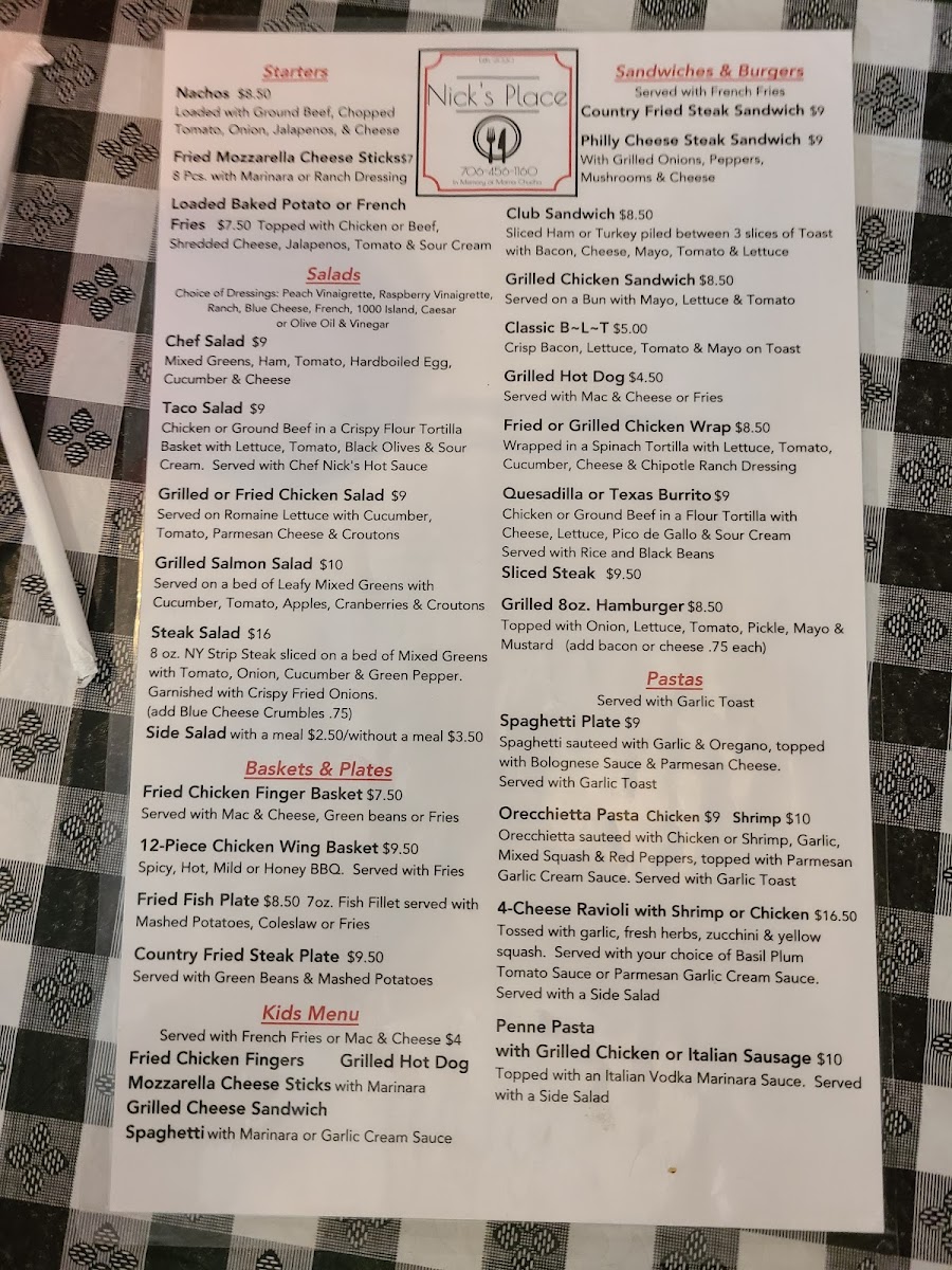 Nick's Place Menu